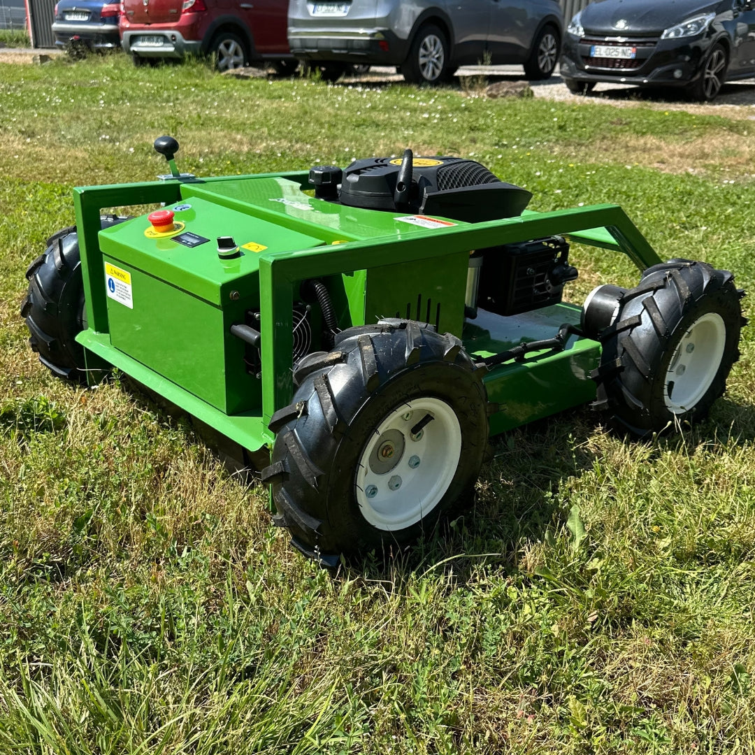 Question sécurité, la radiocommande offre une portée optimale et un contrôle précis des mouvements. Le système d'arrêt d'urgence à distance garantit une utilisation en toute sérénité, même sur les terrains les plus challenging avec des pentes jusqu'à 35°.